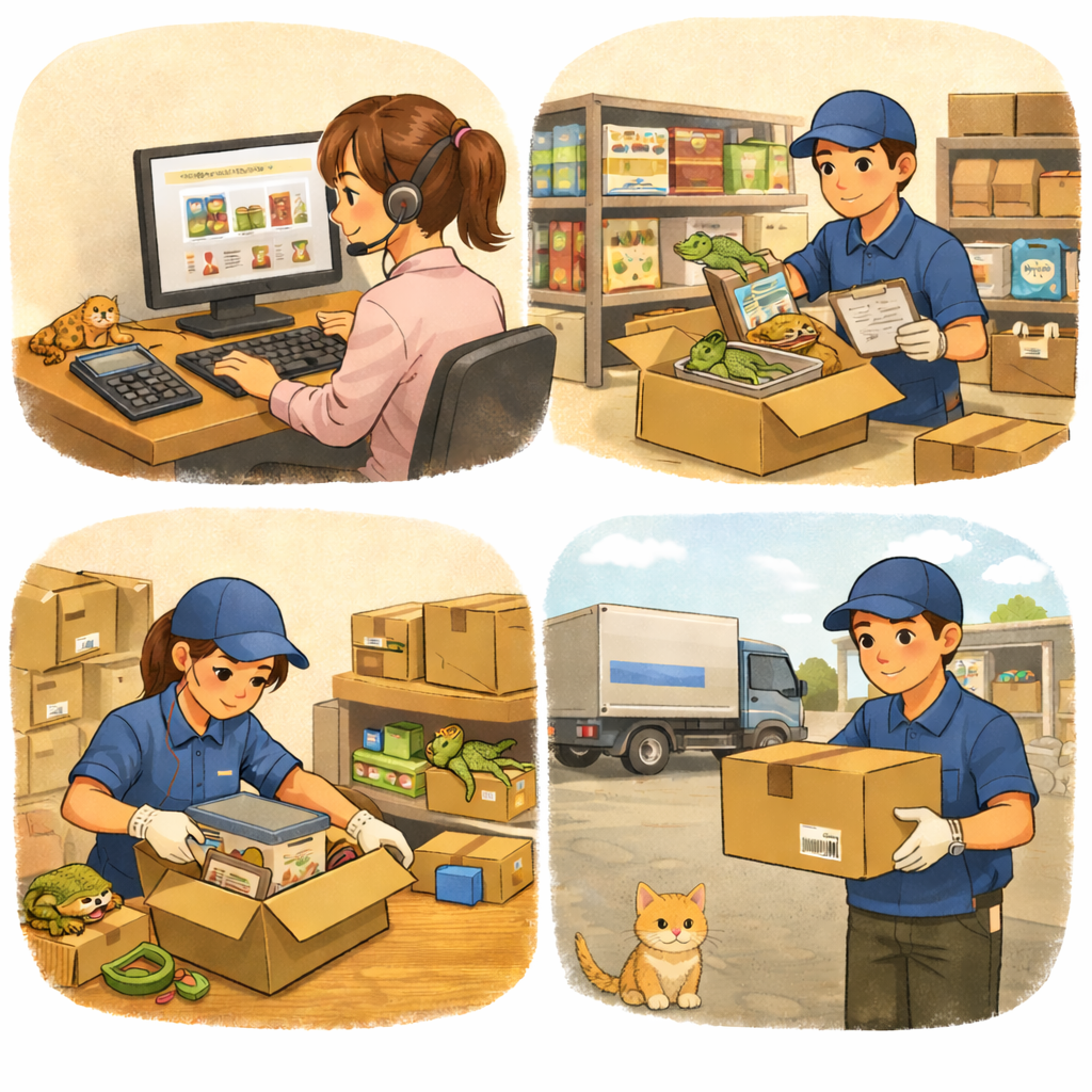 ペット用品中心のECサイトの受発注業務・発送業務をお任せします。